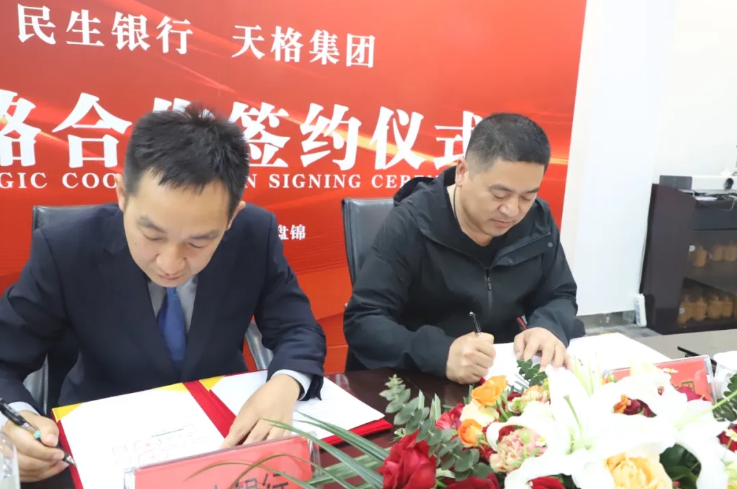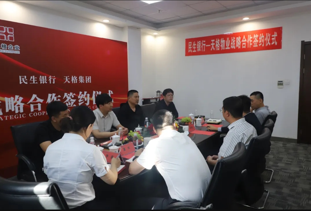 2024年5月15日下午,盤錦天格企業(yè)與中國(guó)民生銀行盤錦分行舉行戰(zhàn)略合作簽約儀式。天格企業(yè)董事長(zhǎng)郭春剛、總裁邢峰濤、天格物業(yè)總經(jīng)理喬旭、副總經(jīng)理柳迪。民生銀行盤錦分行行長(zhǎng)邱可非,副行長(zhǎng)尹巍及銀行相關(guān)部門負(fù)責(zé)人參加簽約儀式。