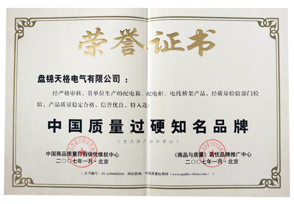 天格電氣2005年被評為“遼寧省行業(yè)百強(qiáng)企業(yè)”、“遼寧省信譽(yù)知名企業(yè)”等榮譽(yù)稱號;2007年天格電氣企業(yè)被授予“中國質(zhì)量過硬知名品牌”稱號。